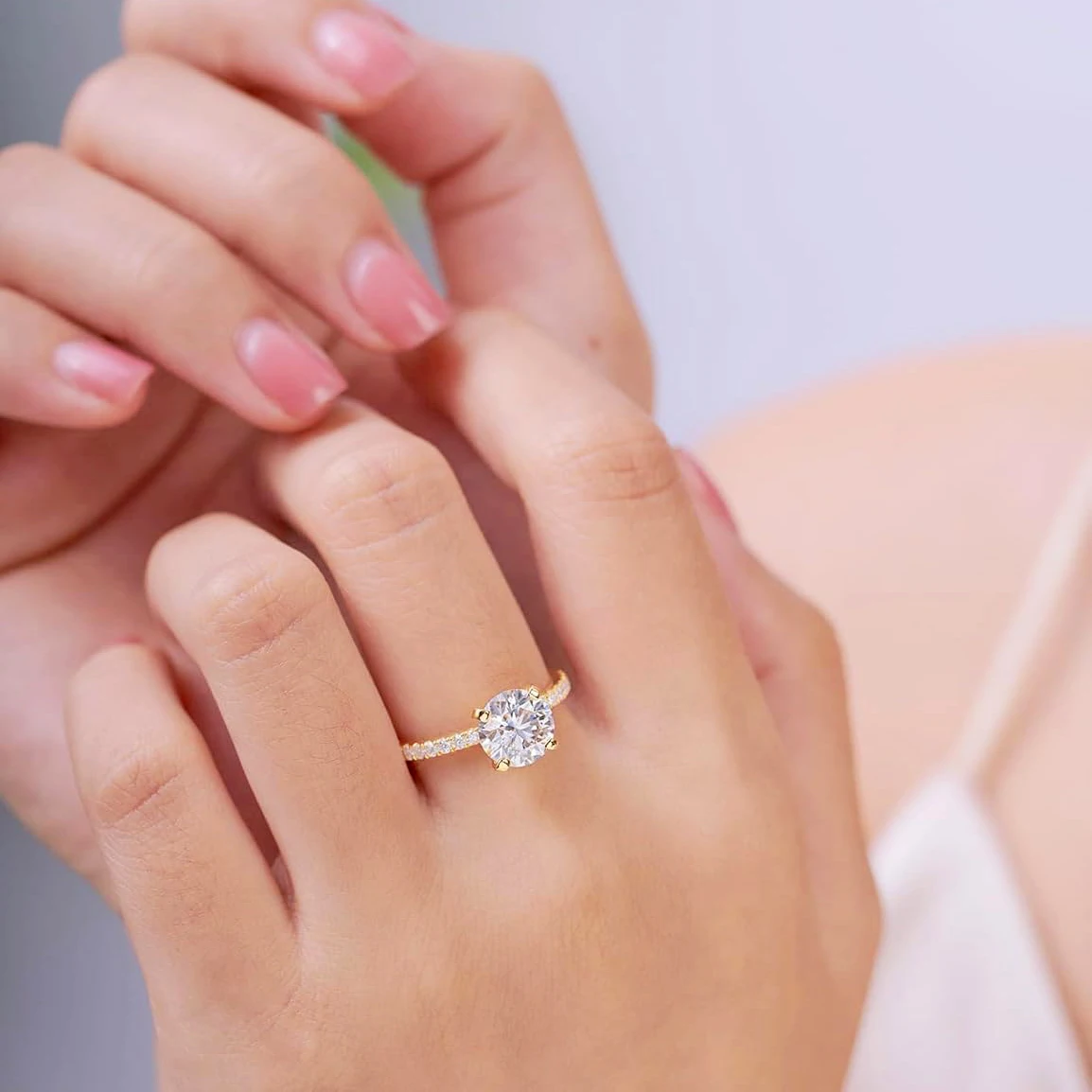 1-2 CT Moissanite Engagement Ring D Color Laboratory Diamond Rings Jewelry 18K Gold Plated S925 Silver GRA Certificate