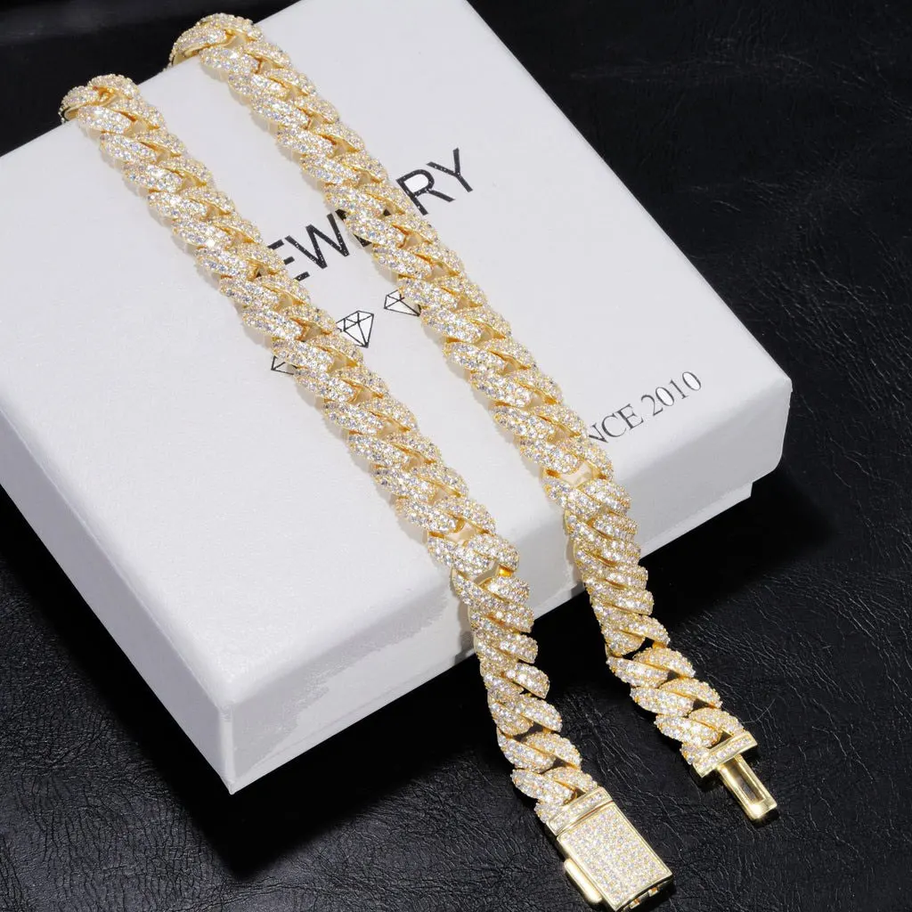 10mm Diamond Cuban Link Chain White Gold/18K Gold Plated Bling 5A+ CZ Necklace Rapper Hip Hop Luxury Jewelry for Men and Women