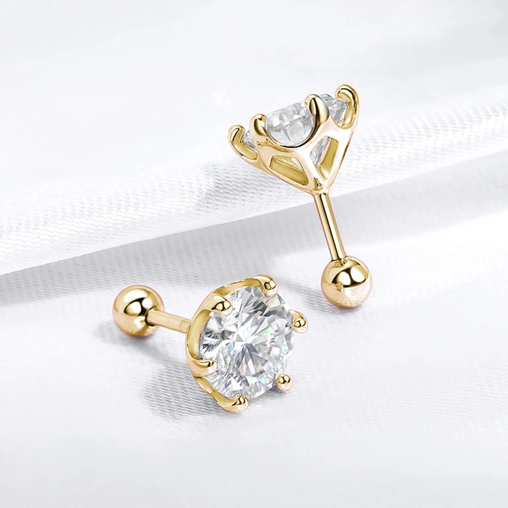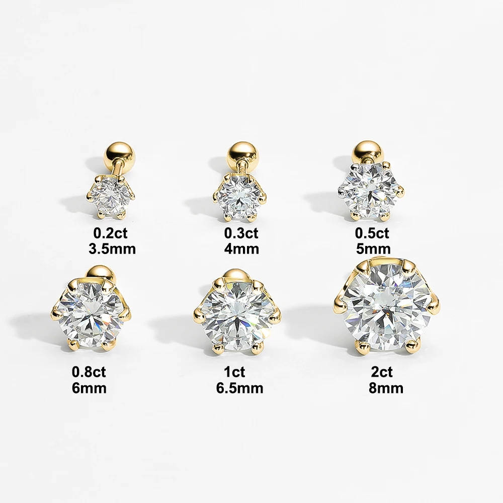 18K Gold Plated 0.2-2ct Moissanite Stud Earrings for Women Men S925 Silver 6 Claws Screw Ear Studs Fine Jewelry with Certificate