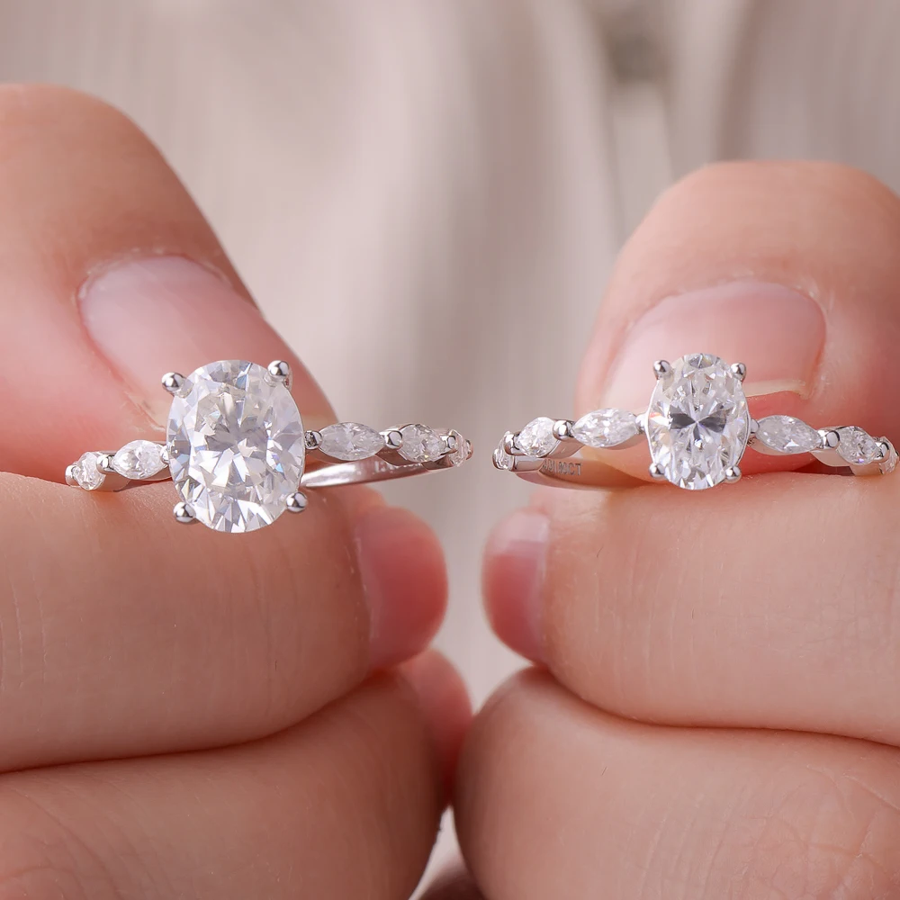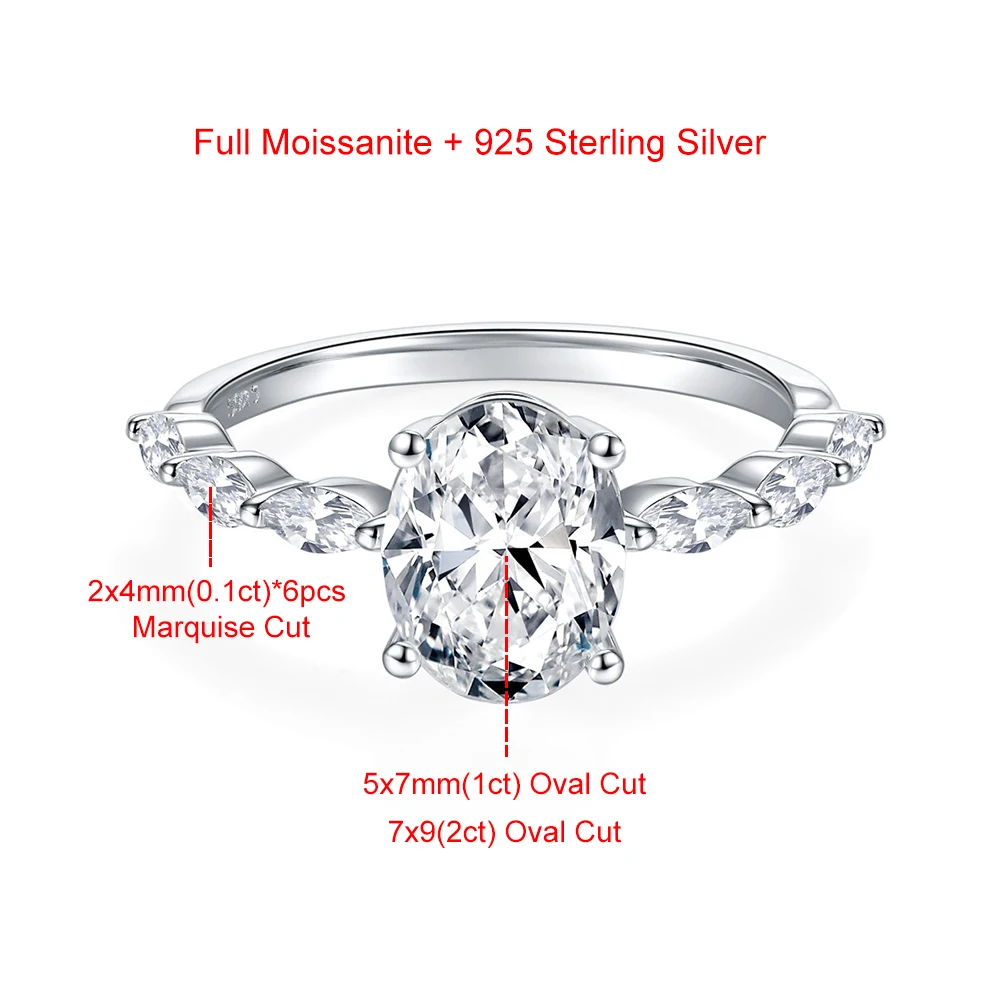 1ct 2ct Oval Cut All Moissanite Engagement Ring for Women 925 Sterling Silver Oval & Marquise Ring Wedding Bands Jewelry Gift