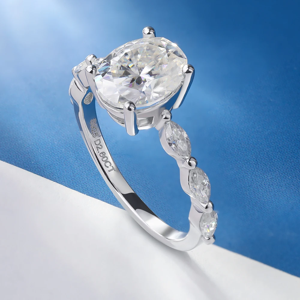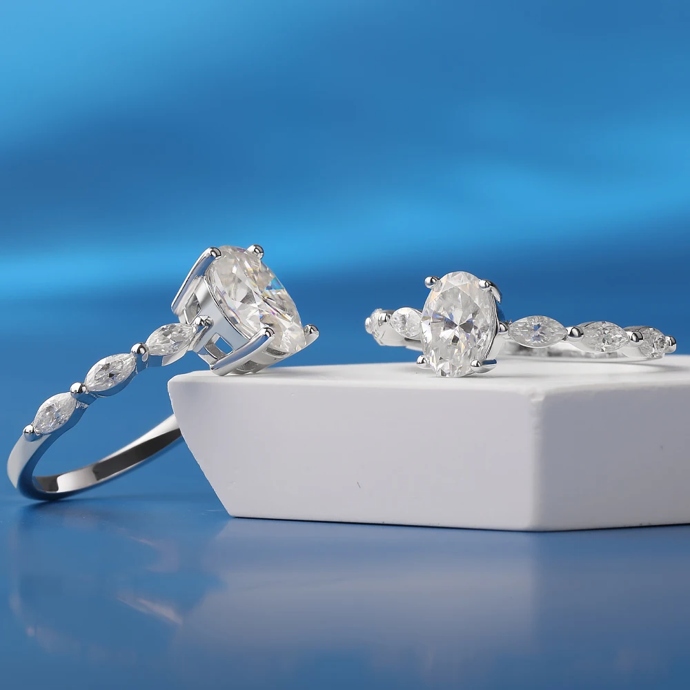 1ct 2ct Oval Cut All Moissanite Engagement Ring for Women 925 Sterling Silver Oval & Marquise Ring Wedding Bands Jewelry Gift