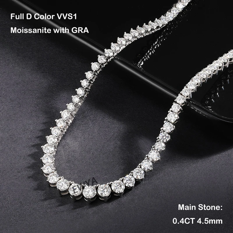 3 Claw 0.4CT 4.5mm Gradient Full D Color Moissanite Diamond Tennis Necklace for Women 925 Silver GRA Certified Neck Chain