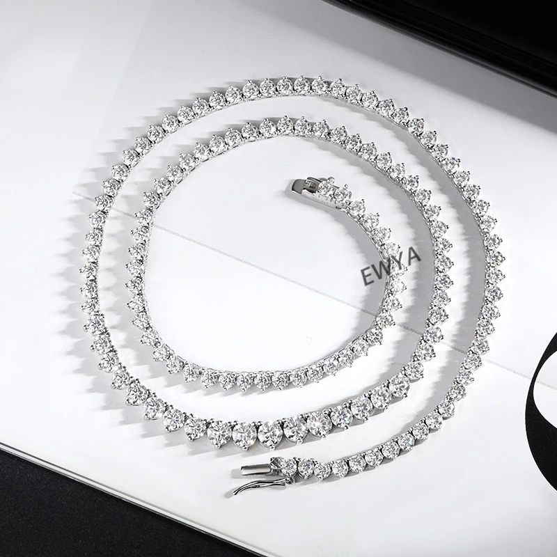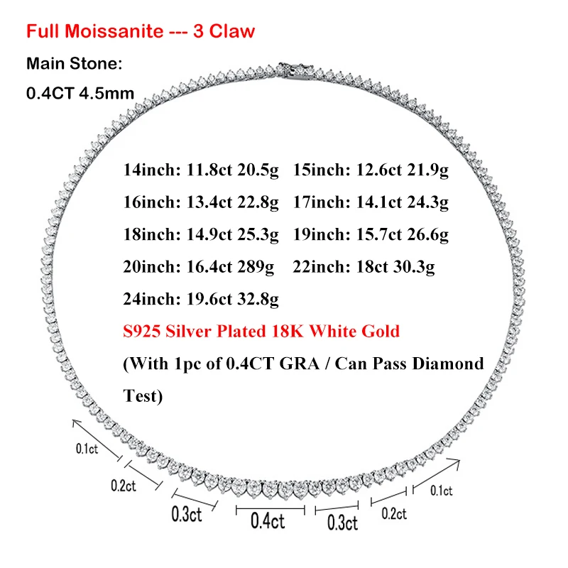 • 3 Claw 0.4CT 4.5mm Gradient Full D Color Moissanite Diamond Tennis Necklace for Women 925 Silver GRA Certified Neck Chain 4
