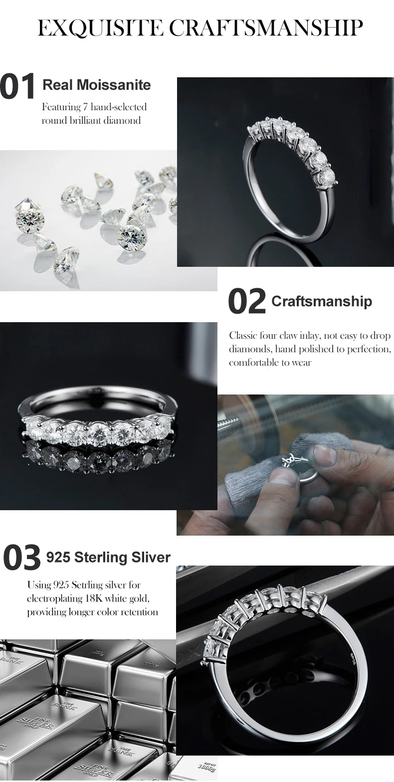 3mm 0.7ct Moissanite Rings for Women 925 Silver 7 Stone Engagement Wedding Sparkling Diamond Ring Fine Jewelry Gift