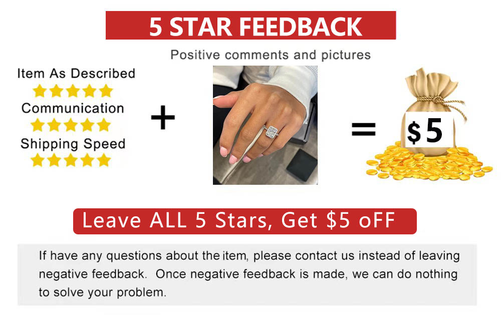 2.If have any questions about the jewelry,please contact us instead of leaving negative feedback.Once negative feedback is made,we can do nothing to solve your problem.