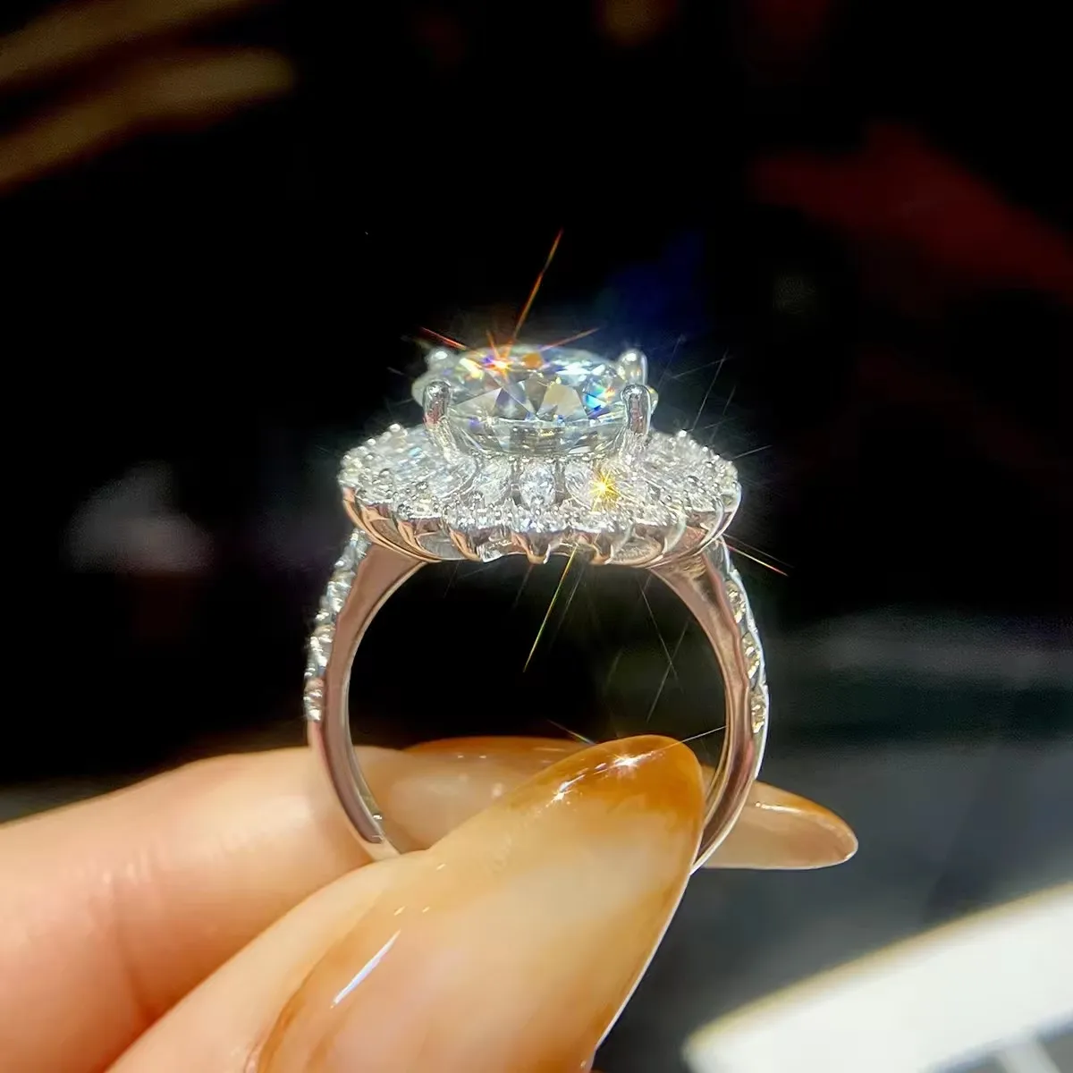 5CT Large Moissanite Diamond Rings For Women 925 Sterling Silver Babysbreath Flower Wedding Ring Fine Jewelry GRA
