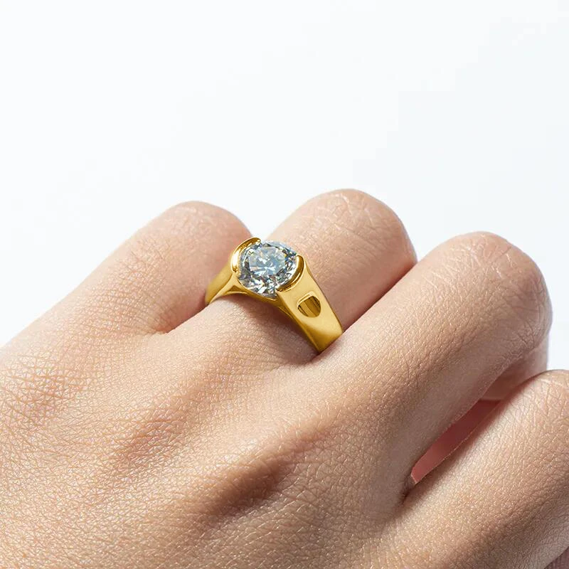 925 Sterling Silver featuring an 8mm (2.0ct) Round Moissanite Ring, that embodies timeless elegance and contemporary style. This classic single-stone ring showcases a stunning moissanite, renowned for its exceptional sparkle and brilliance, making it a perfect choice for any occasion. Crafted from high-quality sterling silver, the ring offers durability. Its sleek design and radiant stone make it a fashionable statement piece, ideal for both everyday wear and special events.
