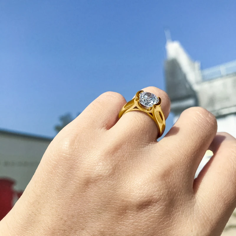 925 Sterling Silver featuring an 8mm (2.0ct) Round Moissanite Ring, that embodies timeless elegance and contemporary style. This classic single-stone ring showcases a stunning moissanite, renowned for its exceptional sparkle and brilliance, making it a perfect choice for any occasion. Crafted from high-quality sterling silver, the ring offers durability. Its sleek design and radiant stone make it a fashionable statement piece, ideal for both everyday wear and special events.