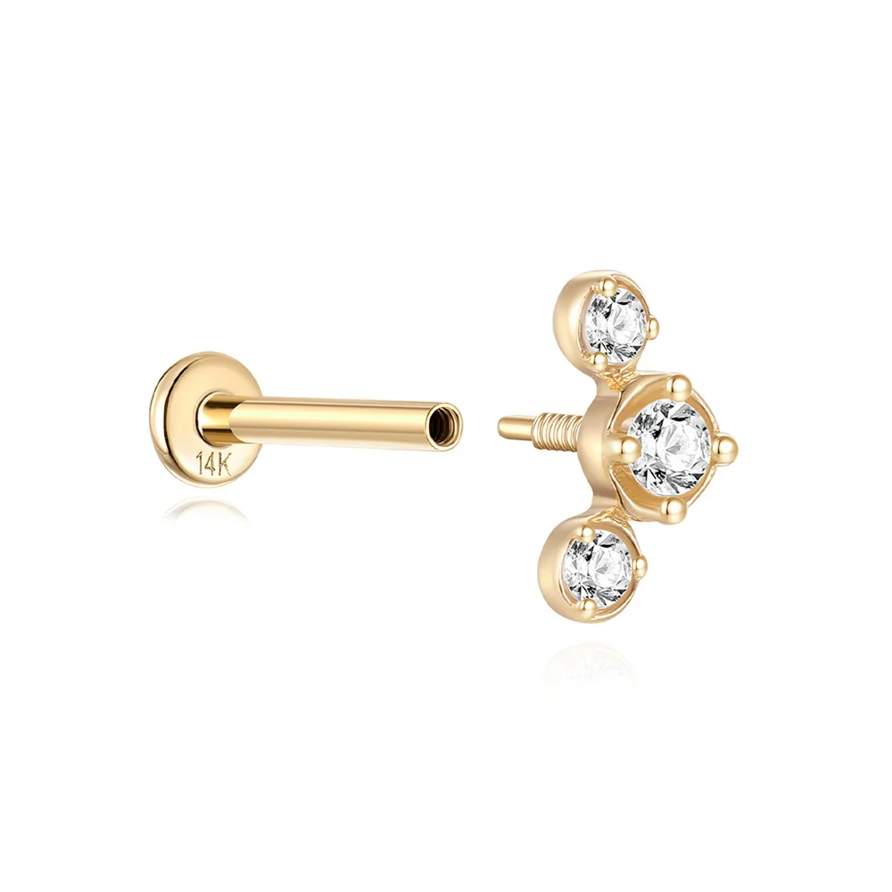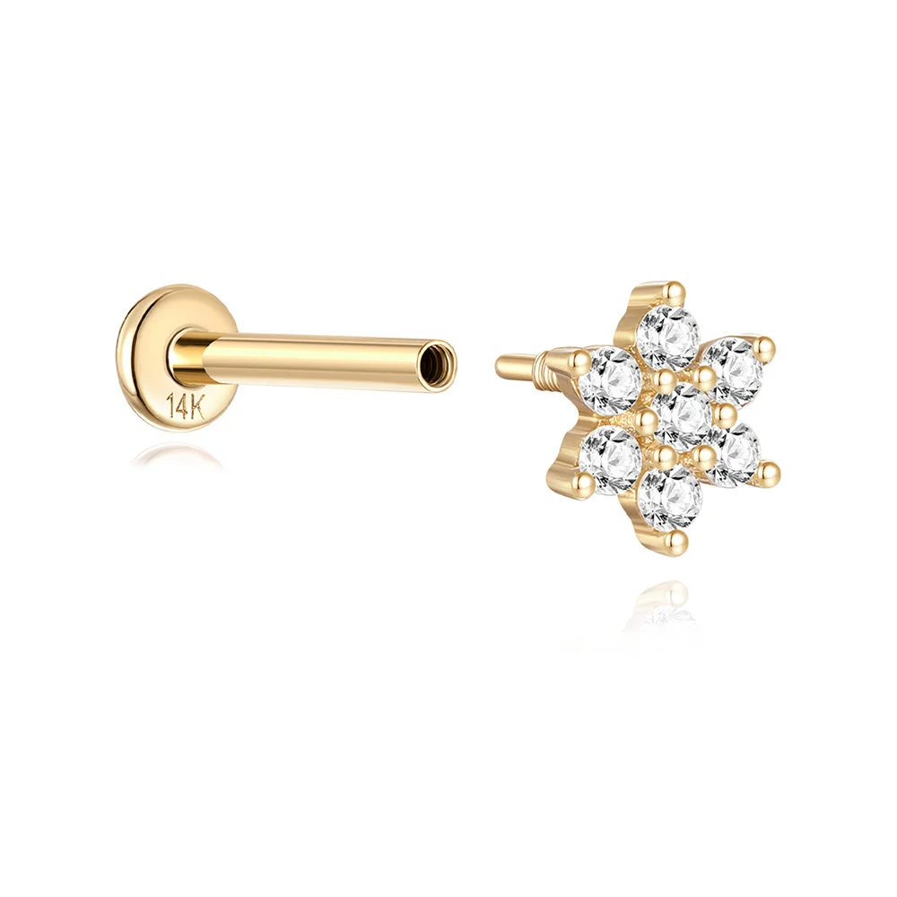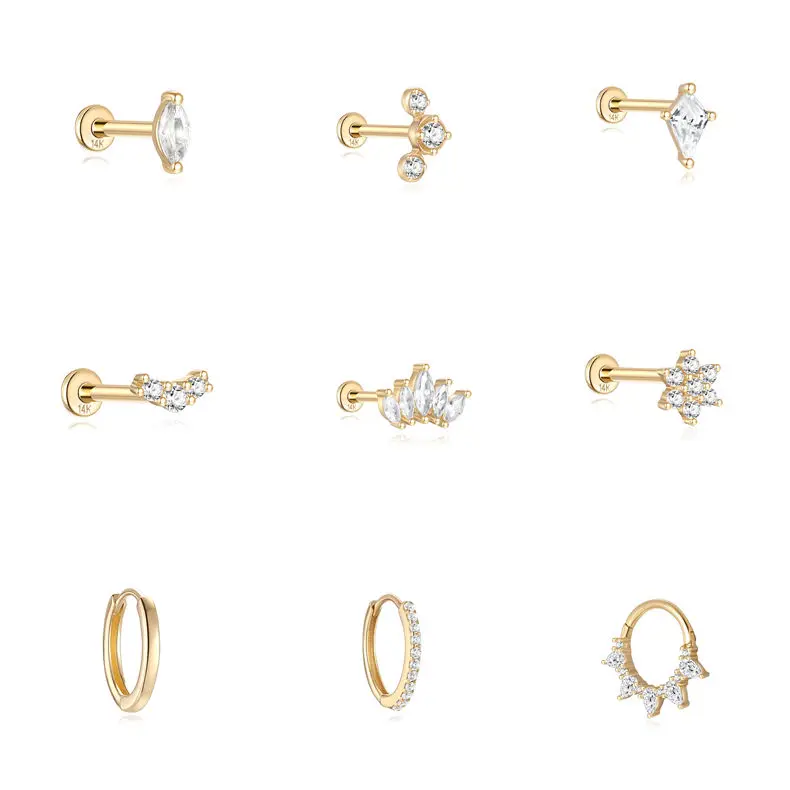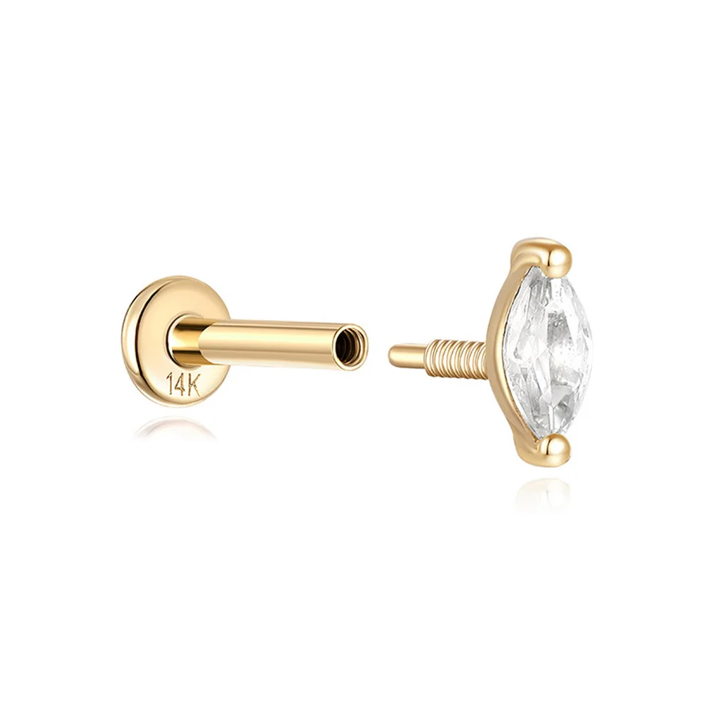 LENNIK 14K Pure Gold Earring Women European and American Fashion zircon Flat Head Piercing stud Smooth Earring jewelry gift