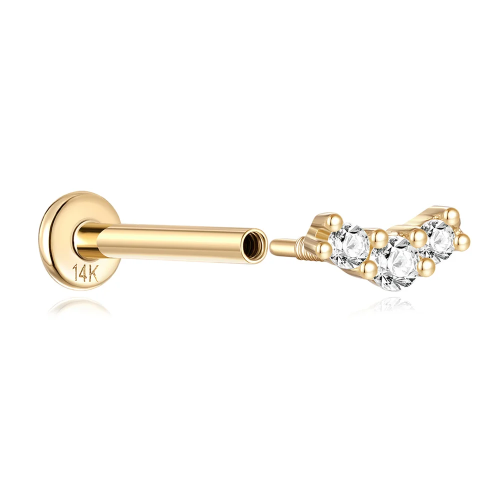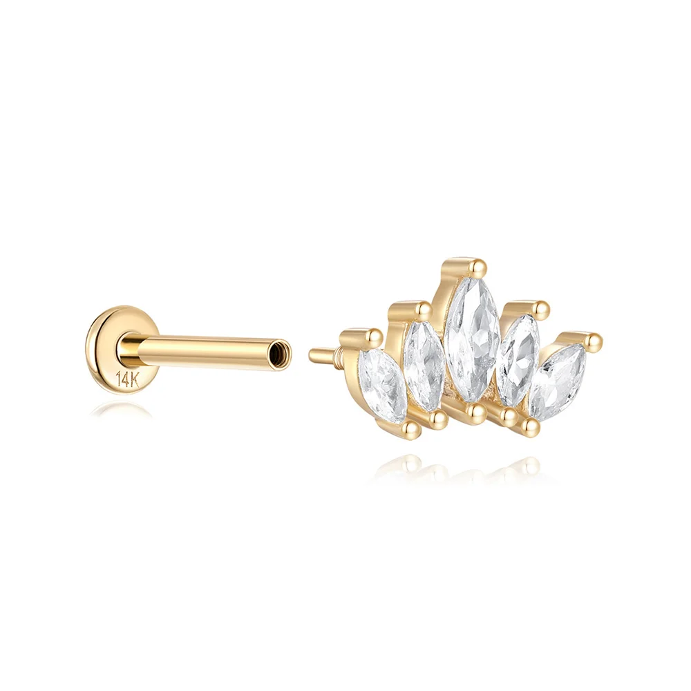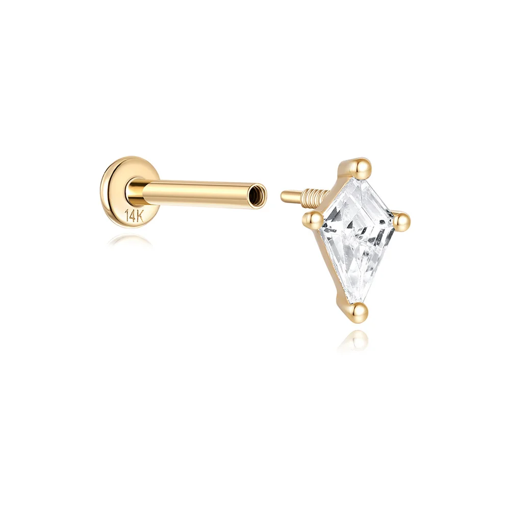 LENNIK 14K Pure Gold Earring Women European and American Fashion zircon Flat Head Piercing stud Smooth Earring jewelry gift