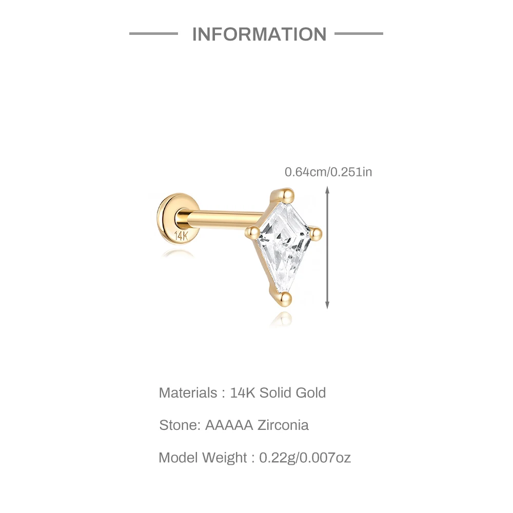• LENNIK 14K Pure Gold Earring Women European and American Fashion zircon Flat Head Piercing stud Smooth Earring jewelry gift 6