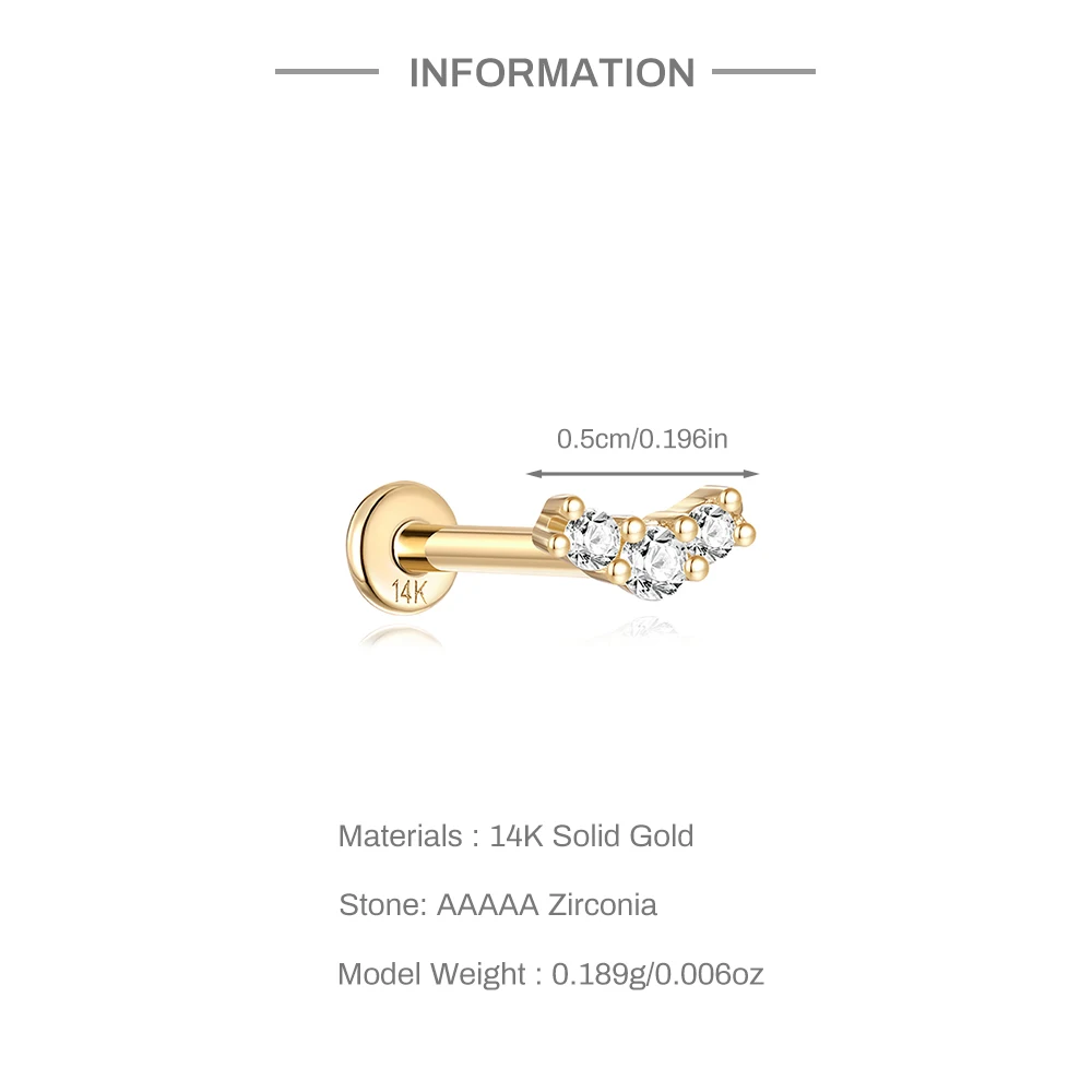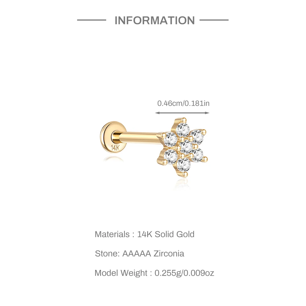 • LENNIK 14K Pure Gold Earring Women European and American Fashion zircon Flat Head Piercing stud Smooth Earring jewelry gift 4