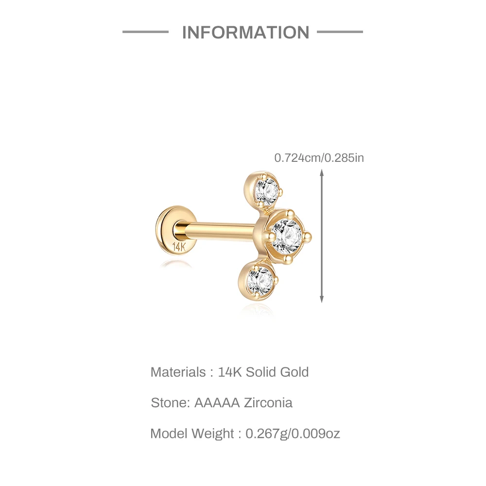 • LENNIK 14K Pure Gold Earring Women European and American Fashion zircon Flat Head Piercing stud Smooth Earring jewelry gift 3