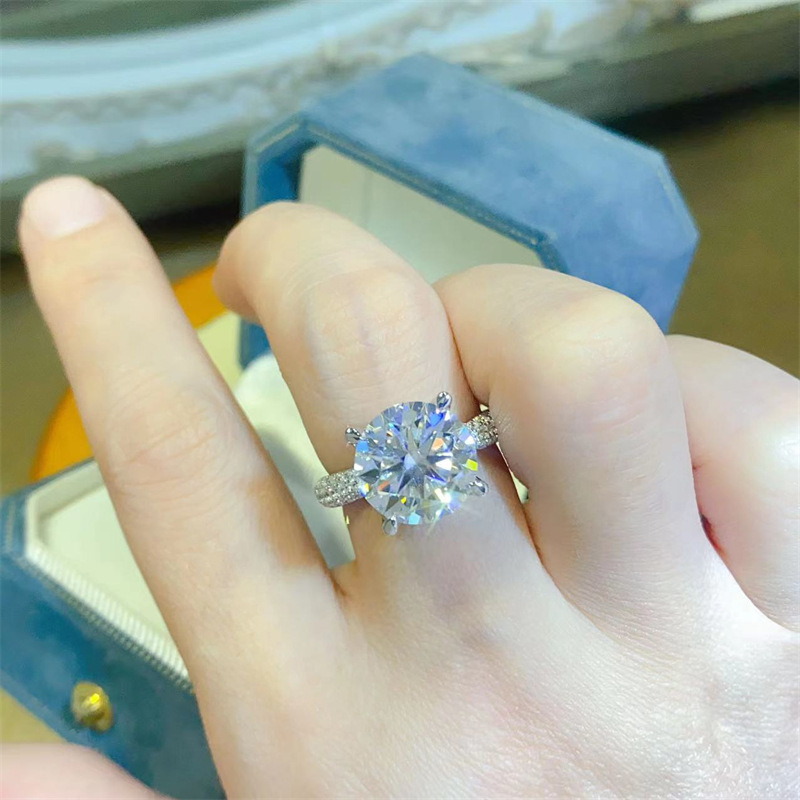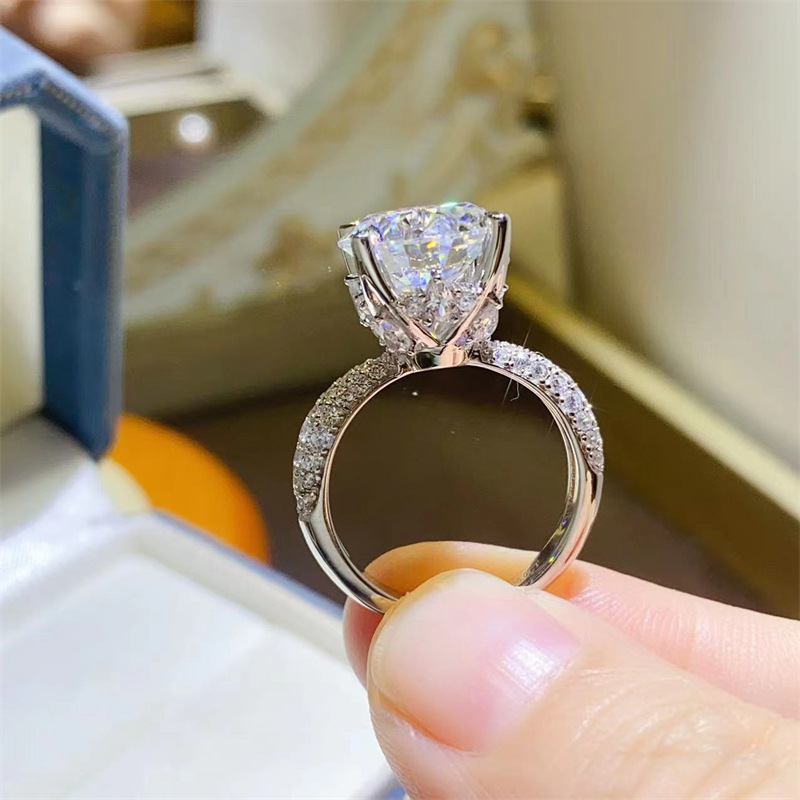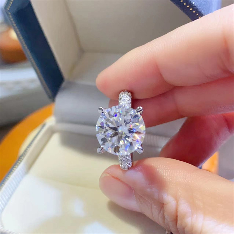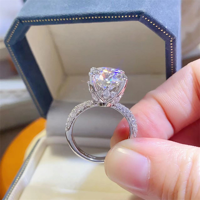 5Carat D VVS Moissanite Wedding Ring S925 Sliver Plated 18K White Gold Classcial Four Claws Engagement Ring GRA