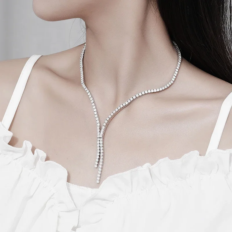 Moissanite Tennis Necklace for Woman with Certificate 925 Sterling Silver with White Gold Plated Tassel Necklaces Jewelry