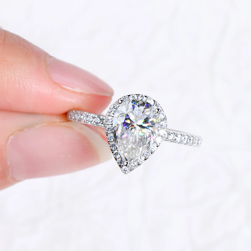Pear Cut Moissanite Halo Engagement Rings for Women 925 Sterling Silver Ring Diamond Promise Wedding Band Jewelry Gifts