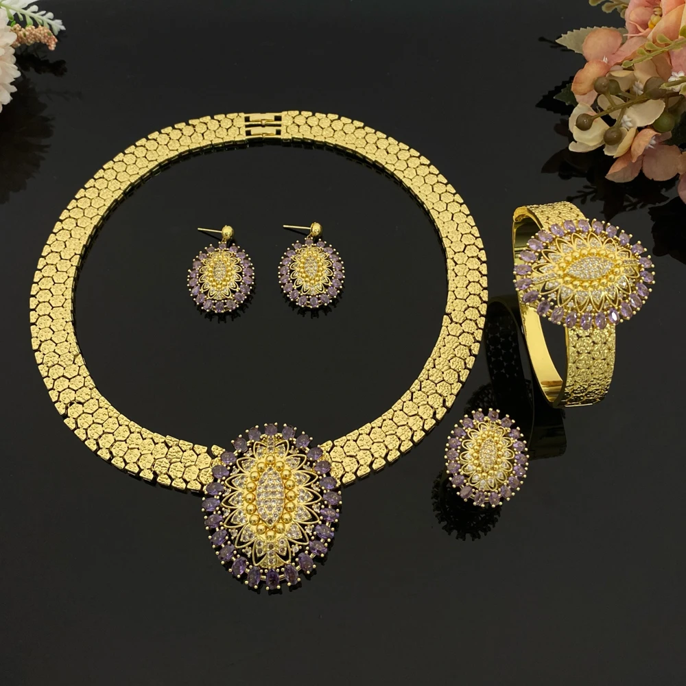 Premium Zircon Copper Plated Jewelry Set ,4Pcs Xmas Gifts Necklace Earrings for Her, Luxury Anniversary Birthday Gift