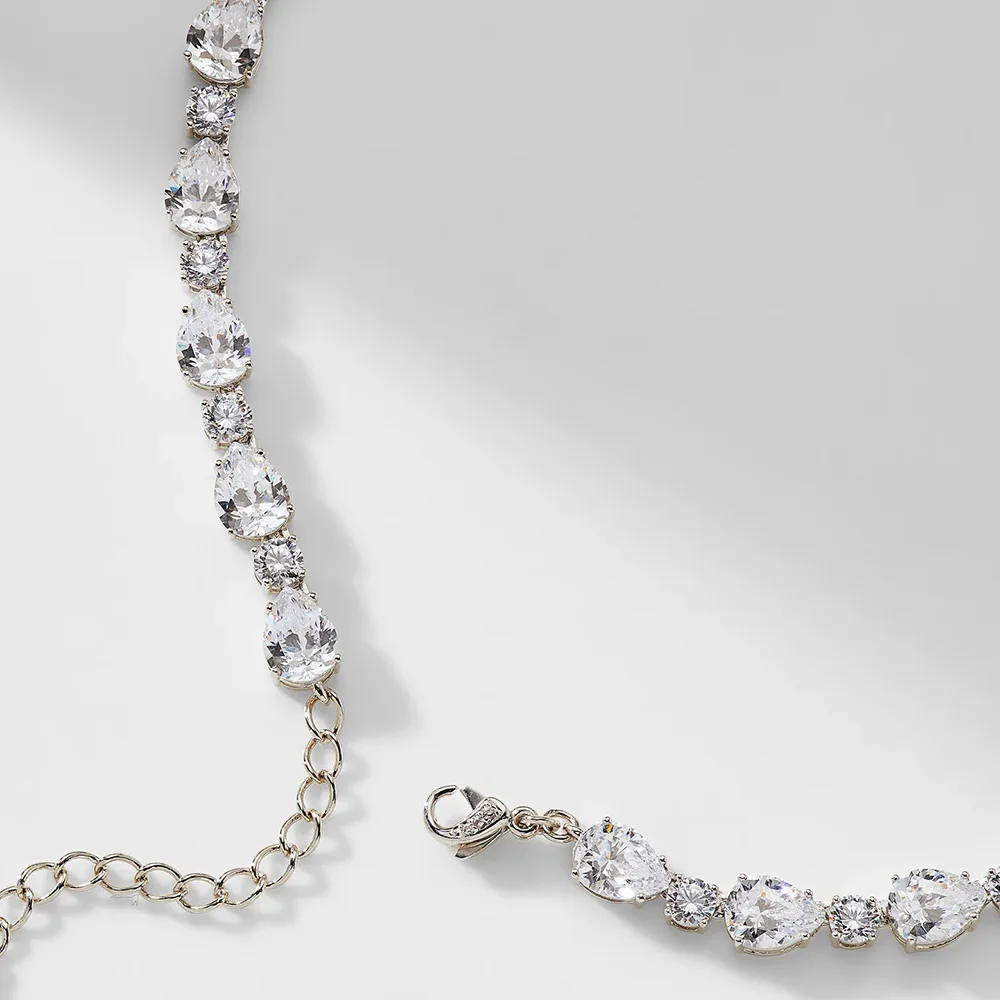 Shiny CZ Pear Drop Necklace Choker for Women Luxury Bridal Round Circle Rhinestone Clavicle Chain Necklace Jewelry