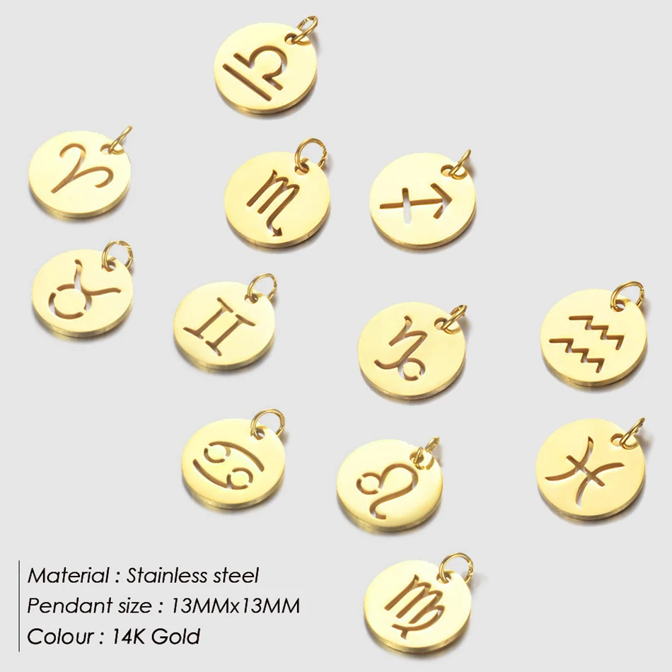 Stainless Steel Disc Components 12 Zodiac Charms for Handmade Jewelry Making Designer Gold Plated Charms for Bracelet