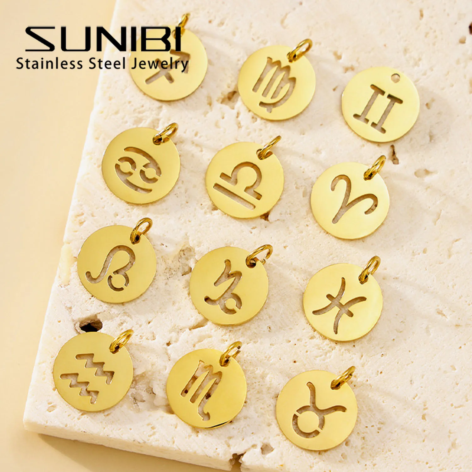 Stainless Steel Disc Components 12 Zodiac Charms for Handmade Jewelry Making Designer Gold Plated Charms for Bracelet