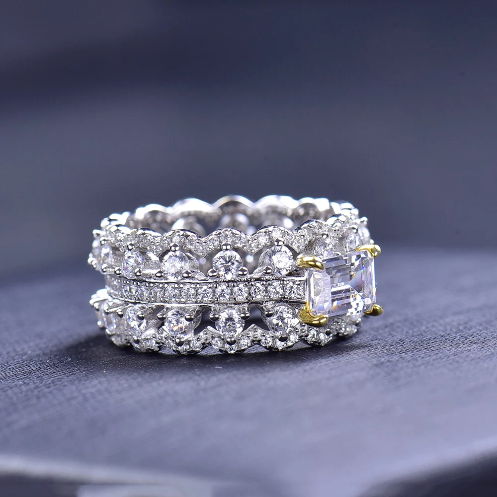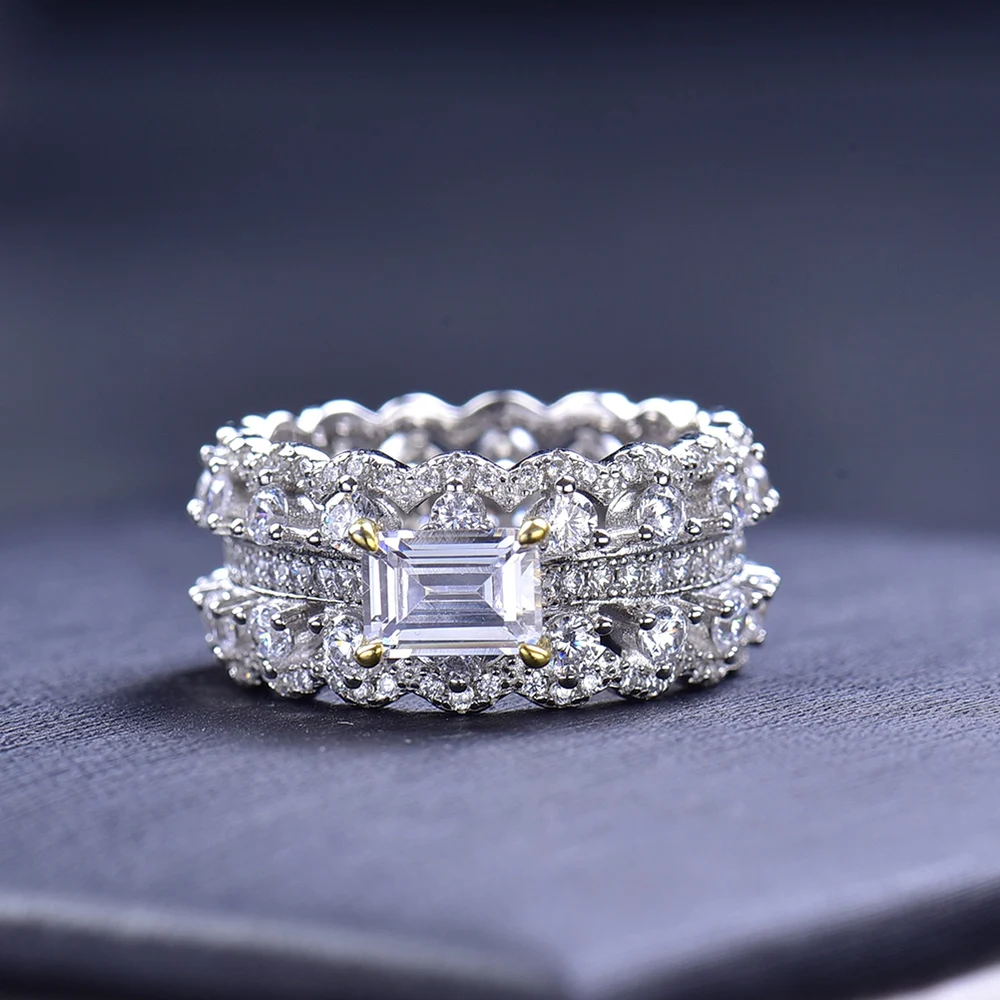 Super Flash 1CT Rectangular Moissanite Wide Ring with GRA Certificate S925 Silver Jewelry Wedding Party Gift