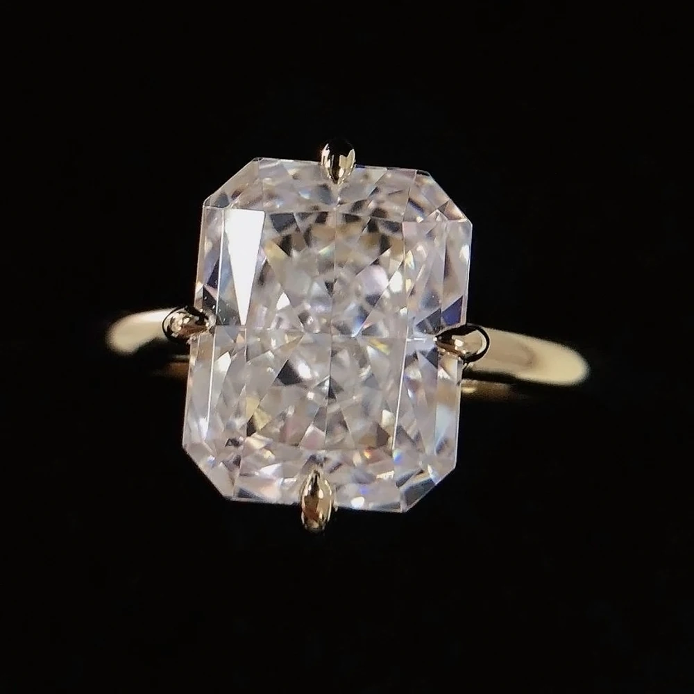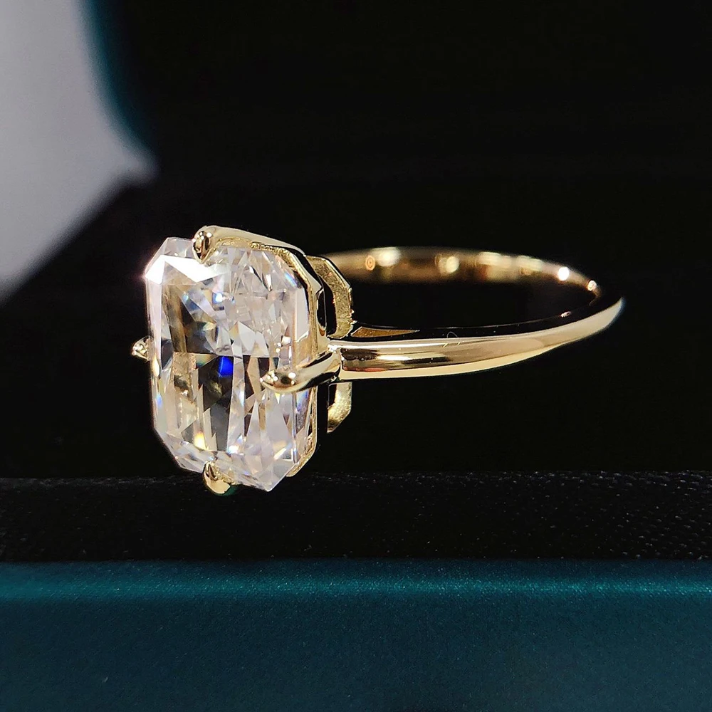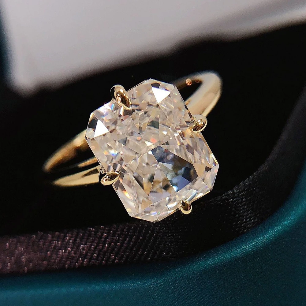Super Flashing 4CT Radian Cut Moissanite Ring Solid S925 Silver Plated 18K Gold Women’s Jewelry Gift