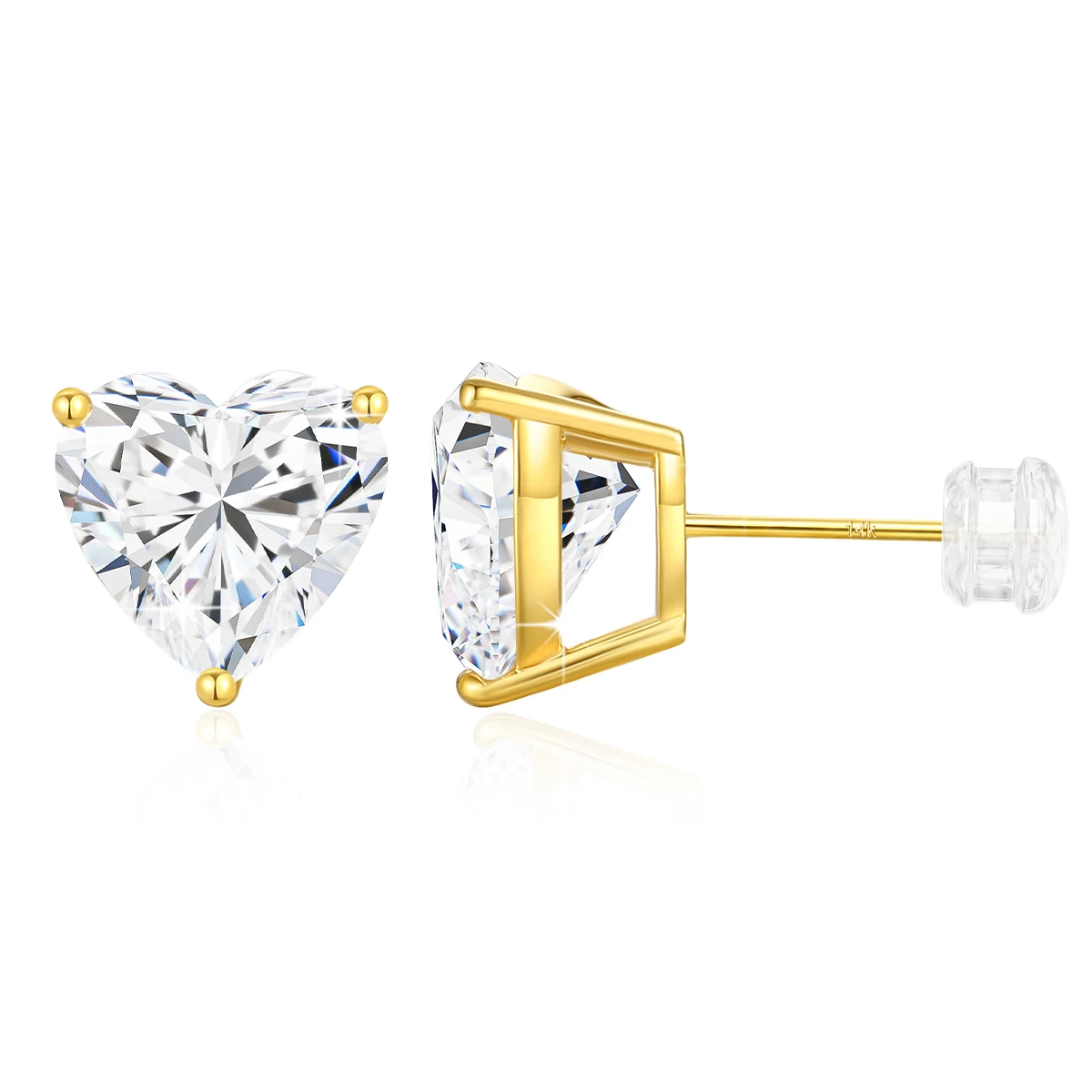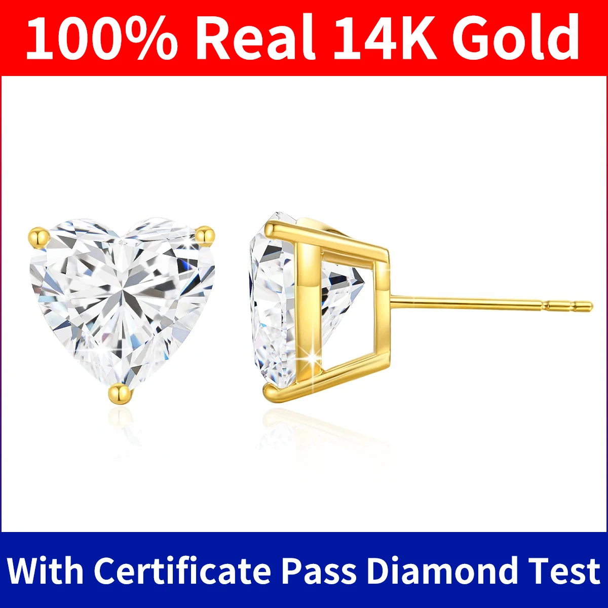 Pure 14K Gold Hearts Earrings Moissanite Real Gold Certified Women Jewelry Three Claw Luxury AU585 K Gold Wedding Gifts